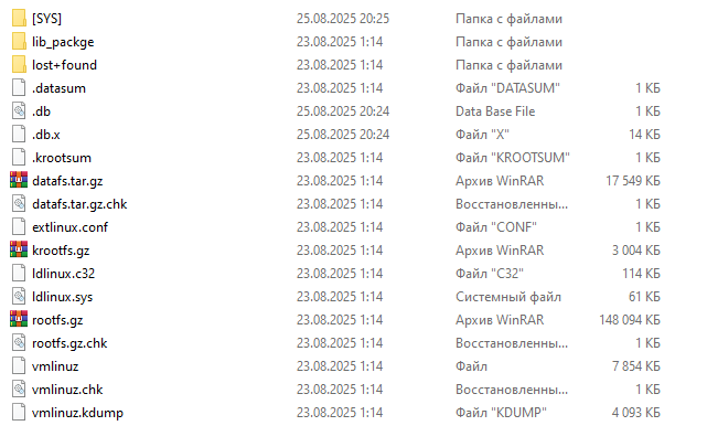 - extlinux.conf — конфигурационный файл загрузчика.
