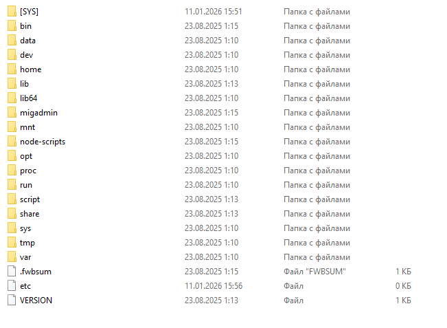 В качестве объекта исследования был выбран образ прошивки FortiOS 8.0 для виртуализации KVM. После распаковки архива мы получаем файл образа диска boot.qcow2. Данный образ можно смонтировать, либо разархивировать (например, с помощью 7-zip), после чего мы получаем доступ к загрузочному разделу.