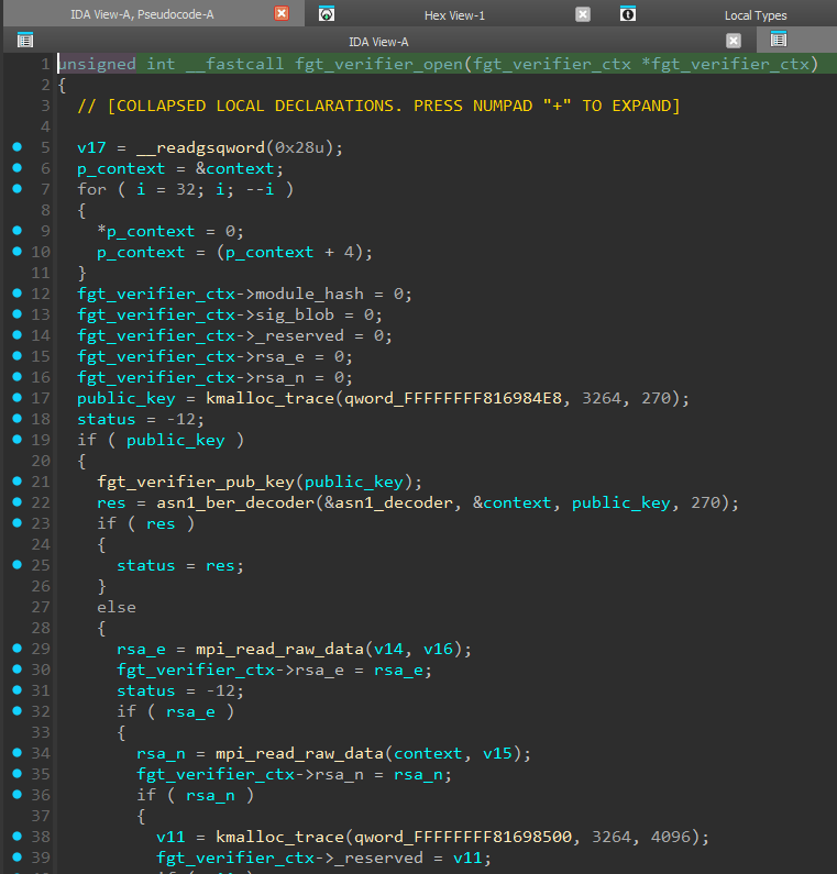 Если мы посмотрим на псевдокод функции fgt_verifier_initrd, то увидим, что адрес на эту структуру передается в функцию fgt_verifier_open.