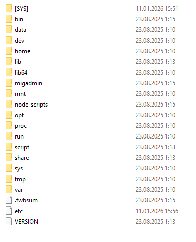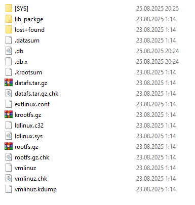 As the target of our research we chose the FortiOS 8.0 firmware image for KVM virtualization. After unpacking the archive we obtain the disk image file boot.qcow2. This image can be mounted or unpacked (for example, using 7-zip), giving us access to the boot partition.